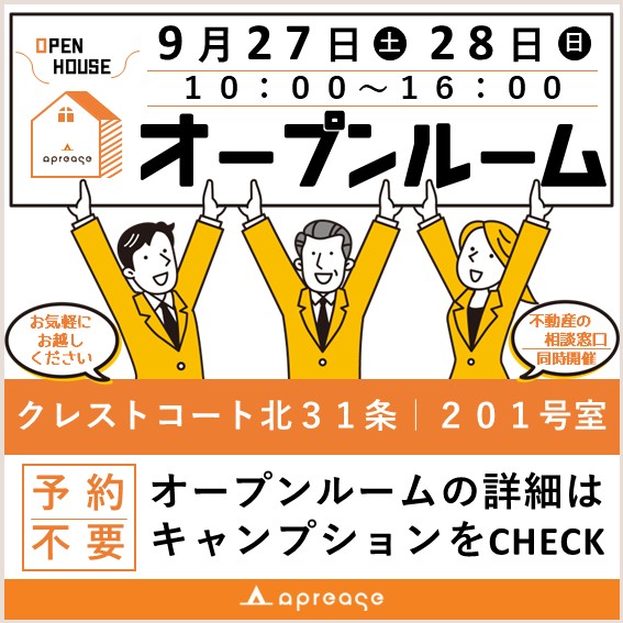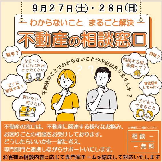 9月27日(土)・28日(日) オープンルーム・不動産の相談窓口 開催のご案内!!