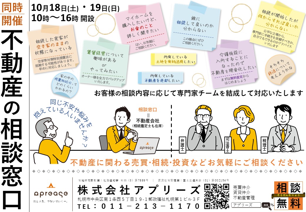 10月18日(土)・19日(日) オープンルーム・不動産の相談窓口 開催のご案内!!