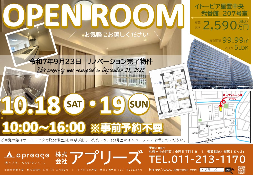 株式会社アプリーズは10月18日(土)・19日(日)にオープンルーム(内覧会)を開催いたします。