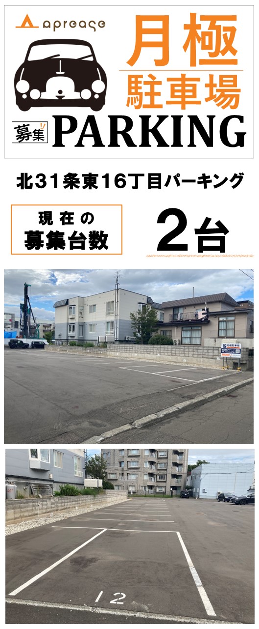 〈募集〉北31条東16丁目パーキング(月極駐車場) 最新情報